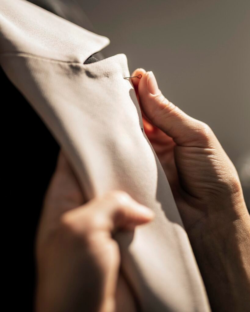 Your accessories should reflect the mood of your chosen fabric. Pocket squares and boutonnières offer precise opportunities to introduce complementary tones or textures. These details complete your summer composition with intention.
