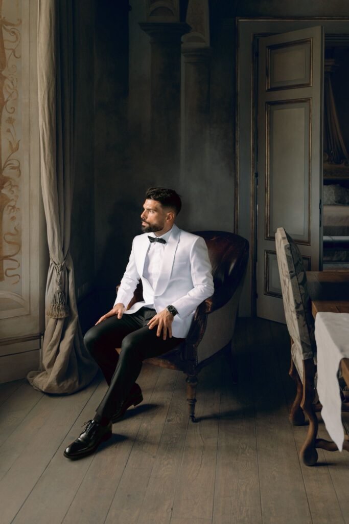 Our featherweight textiles resist creases for a sleeker appearance and exude an everlasting lustre. Barathea is our secret for the iconic black tuxedo, while a blend of silk and wool whispers elegance into our white and azure tuxedos. Indulge in the extravagance of our custom tuxedos, where fashion style meets royalty for a statement-maker wardrobe.